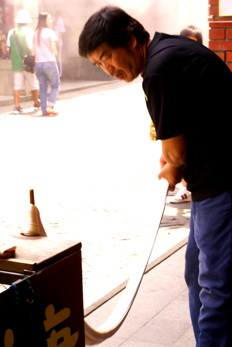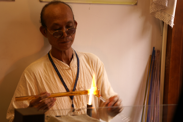 這兩位是在民俗技藝村的兩位技術者,前者是玻璃技藝,二是糖蔥技藝...