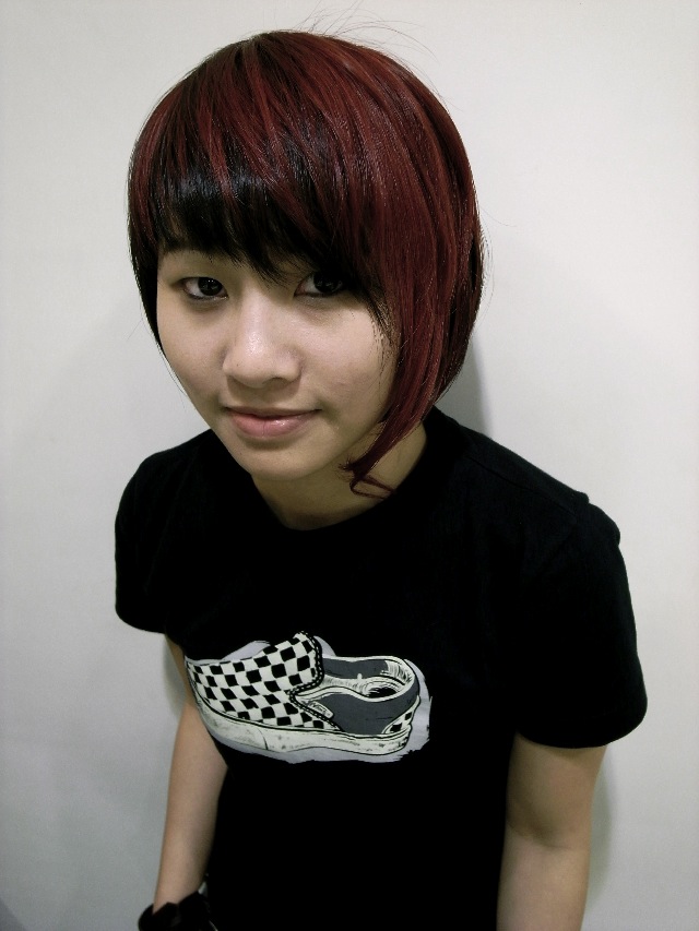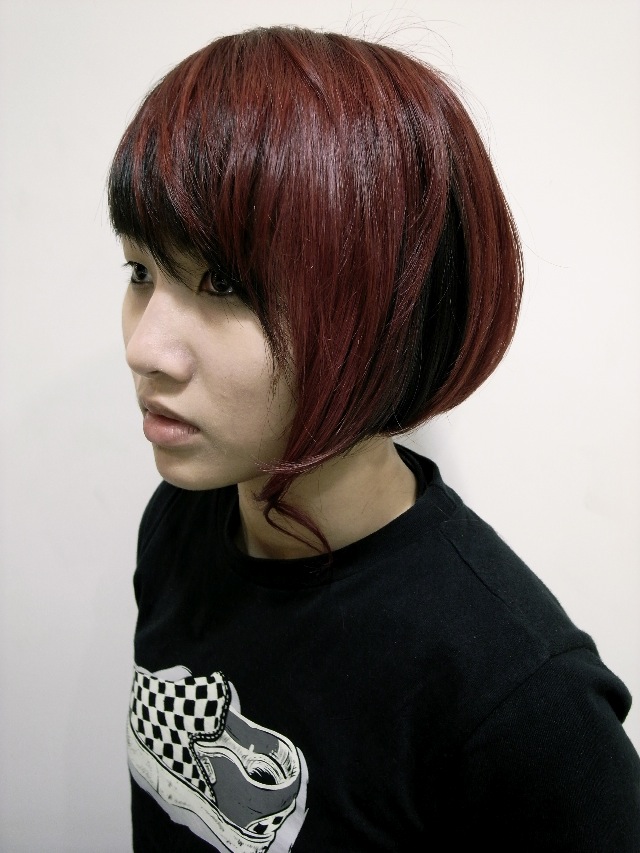 特別區塊的不對稱造型兼染法 剪裁使用簡單輪廓幾何線條 染髮則運用大面積區塊染髮 讓整個髮型的剪裁更加立體及層次更為明顯
